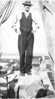 Jim Davidson, one or the workers repairing Brock's Monument, 1930 In 1929, during a severe storm, one of the outstretched arms of General Brock was severed. In addition the head and shoulders of the statue and the upper part of the torso were almost shattered by lightning. Extensive repairs were begun the following year. One section of the statue was completely renewed, the whole shaft pointed to make it weather proof, lightning arresters were installed and a new railing placed at the top of the column" This description is from the Review -