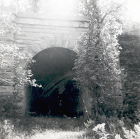 Welland Ship Canal- Grand trunk Railway Tunnel under Third Canal The Grand Trunk Railway Tunnel Under the third Welland Canal surrounded by overgrown vegetation. -