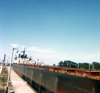 "Bruce Angus" in Lock 3, St. Catharines, Ontario, Canada A view showing the observation platform at Lock 3 of the Welland Canal section of the St. Lawrence Seaway, also showing one of the largest lake boats that the seaway is capable of handling, the Bruce Angus. This is one of 8 locks that boats must lock through in order to "climb the mountain," a height of 326 feet. -