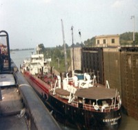 Ship in Welland Canal Ship in Welland Canal about to go into locks -