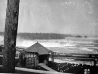 Chippawa-Queenston Hydro Canal Conduit and the Toronto Power Plant, Horseshoe and American Falls in background American Falls far left ; Horseshoe Falls centre ; -