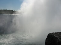 Card was mailed in Niagara Falls NY on July 1st 1915 and mailed to Mr George Dukerow ?, RR 1 Beaverton, Canada ; message reads Dear George, Here I am for the day, having a good time. How are you spending the day?I don't think I will go home anymore, I am having such a good time. All for this time Bye, Bye [signature not readable] " ;