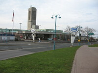 Royal motorcade with King George VI and Queen Elizabeth arrive at the Horseshoe Falls escorted by the Mounted Royal Canadian Dragoons. The car they are riding in is a 1939 Lincoln convertible sedan.