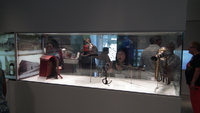 Niagara Falls History Museum Grand Opening - Exhibit 2 Some pieces in the exhibit are admired by a woman. -
