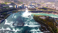Aerial View of Niagara River and Horseshoe Falls An aerial view of Niagara River and the Horseshoe Falls. The Ontario power generating station, several hotels and towers can also be seen. -
