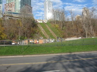 Niagara Falls Incline Railway The Niagara Falls Incline Railway, undergoing construction. The Embassy Suites Hotel and the Oakes Hotel overlooking the Falls are visible in the background. -