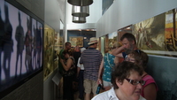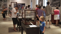 Niagara Falls History Museum Grand Opening - Crowd at the 1812 exhibits. People enjoy the war of 1812 themed exhibits on the first floor of the new addition to the museum. -