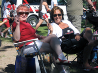 Spectators at the unveiling of the Lundy's Lane Battlefield Commemorative Wall John Harkness (middle) with two unidentified women at the ceremony for the unveiling of the Battle of Lundy's Lane Commemorative wall which depicts scenes from the Battle Of Lundy's Lane. In celebration of the City of Niagara Falls Centennial and the 190th Anniversary of the Battle of Lundy's Lane, fought July 25, 1814, these limestone panels were created to pay tribute to those whose lost their lives in the battle. Panels were created by Campbell Monument Company of Belleville. Erected July 25, 2004 by his Worship Mayor Ted Salci and members of the City of Niagara Falls Municipal Council. -