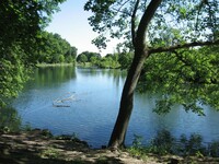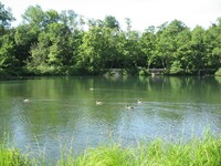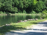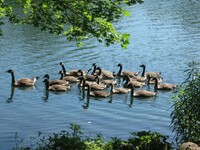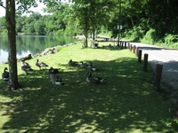 Canada Day 2011 City of Niagara Falls celebrations at Optimist Park Banner reads Stamford Leo Club sponsored by Stamford Lions Club ; Beattie's Basics on Dorchester Road can be seen on the right of the photo through the trees ; -