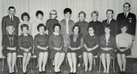 Back row L-R: Bob Cushing Principal, Faye Wolf, Jan Gustaffoson, Nancy Grant, Marg Kehoe, Jane Sharp, Carolyn Komaroni, Norm Ring Jim Hamilton ; Front row L-R: Pat Bougay, not identified, Ivy Gross, Margaret Holmes, Mary Veysey, Jane Harold, Joyce Schefold, Judy Kimberley ;