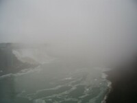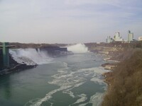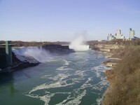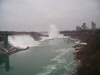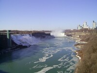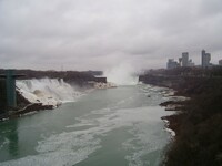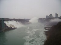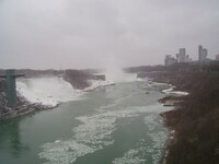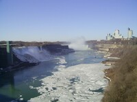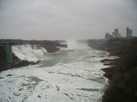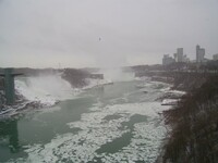 Weather conditions in Niagara Falls when the photo was taken: 4º C Cloudy Time: 8:27 a.m. Wind southwest, 19 km, gusts to 45 km N.B. - ice boom was removed from the mouth of the Niagara River on April 11, allowing ice from Lake Erie to flow downriver This photo from Rainbow bridge, where concrete meets steel part of bridge.