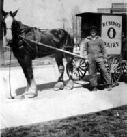 William Joseph Galley, 2nd from right. Mr. Galley drove a horse & wagon Express Delivery for the railroad. He later delivered meat for Jake Hillesheim.
