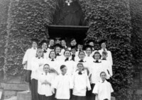 Starting at back row L-R: Nora Lennox, Mr Clarke, Anna Bell, Joe Charlebois, Eva McKenzie, Marie Staedt, ? , Doris Lennox, Pat Staedt, Ella Kett, Linda Hicks, Marion King, Phyllis Hicks (Bray), Grace Speck, Olive Manahan, Marion McKenzie, Teddy Keyy, Howard Clarke, Marie, Burlinguette, ? , Irwin -?, ? ;