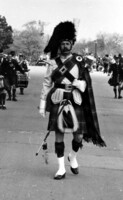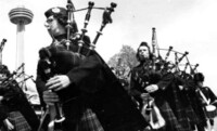 Pipe Band marching in parade at Queen Victoria Park, Skylon Tower in the background