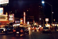 Queen Street at night, Seneca Movie Theatre on right