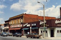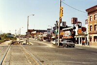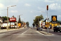 Stanley Avenue and Main Street intersection, Happy Wanderer Restaurant left