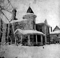 ...the photograph was taken on the present site of the Evening Review building. The house to the left of centre is the Petrie homestead. The small square foundation at the left is what remains of the ticket office for the miniature golf course which F. H. Leslie built on this property during the miniature golf popularity of the early 1930s ...George Seibel ;