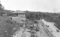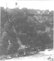 House and shop of Henry Brown on North side of Ferry, opposite Clark, (Ellen Ave. in rear) Built about 1871. Brown was an English builder who came to the Falls in 1841. General Store from 1871. Member of first and succeeding village councils. Flat-roofed addition at left is later. Public weigh scales were opposite side door and windows. Farmers weighed loads of hay here before delivary, or going to Clifton market.