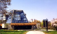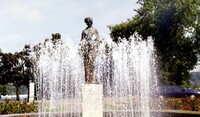Niagara Parks Commission Greenhouse - fountain outside of entrance, Niagara River in background