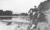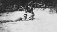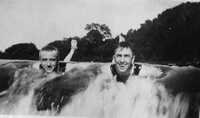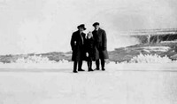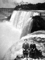 Ernest Miriam and Edward Leith Fox pose by the Horseshoe Falls