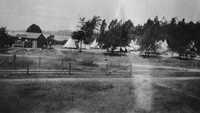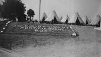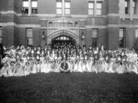 Cast of the rededication of Old Fort Niagara ceremony in front of the Armoury, Victoria Avenue