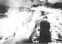 Ernest Fox - Self Portrait, sitting at base of Ice covered American Falls