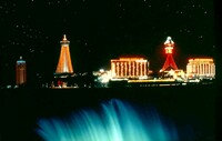Maple Leaf Village ; Panasonic & Skylon Towers during Winter Festival of Lights Skylon Panasonic Towers General Brock Hotel -