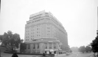 Type:hotel; No. of negatives: 1; Photos included: 0; Notes: exterior of hotel; negative badly damaged; Client: Sheraton-Brock Hotel