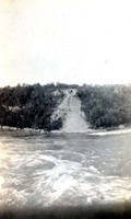 Back description: The nearest and most comprehensive view of the mighty Niagara Falls is had from Prospect Park, which is on the American side next to the falling waters. At Prospect park we stand only a couple of feet above the American stream, just where it makes its smooth downward curve. We might touch it with our hands, as it bends, solid and glassy, over the long ledge of rock. We can lean on the rails and note how soon its polished surface breaks into silvery fragments, powders into glistening dust; and far beneath we can see the frosty mass strike black boulders and over and between them, flow off as frosted torrents into the dark green flood of gorge. From a distance the American Falls look quite straight. When we stand beside it, we see that its lines curve inward and outward. As we gaze down upon these, every change in the angle of vision and in the strength and direction of the light gives a new effect.
