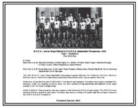N.F.C.V.I. Junior Boys District & C.O.S.S.A. Basketball Champions, 1945 Back Row L-R ; Desmond Clements, Gordon Taylor, E.J. McGirr, Principal, Robert Logan, Assistant Manager, J.V. Rose, Coach, Clifford MacGillivray, Albert D’Amico Front Row L-R ; Doug Robertson, Frank Ingold, Frank Sheppard, Benny Nicks, Russell MacBride, Vernon Anderson. (Absent) Bob Cuthill, Manager -