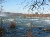 Niagara Falls skyline as seen from the upper Niagara River The upper Niagara River with the Niagara Falls skyline in the background. -