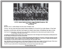 N.F.C.V.I. Senior District & C.O.S.S.A. Rugby (Football) Champions, 1944 Back Row L-R ; E.J. McGirr, Principal, Gord Dorst Coach, Ken Borisiuk Coach ; Third Row L-R ; Tom Prata, Trainer, Paul Clement, Desmond Clements, Bill Mateyk, Paul Thomas, Bob Price, Jim Allen Manager, J.V. Rose, Coach Second Row L-R ; Bill Sullivan, Walt Fields, Frank Sheppard, Norm Woodruff, Vernon Anderson, Cliff MacGillivray, Frank Ingold, Jim Carter Front Row L-R ; Allan Smyth, Roger Gullion, Alex Permus, Don McKenzie, Joe Biamonte, Arthur Foster, Boris Ouzunoff, Captain, Bob Petrie, Jim Climenhage, Harry Wyss, Albert D’Amico -