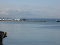 Lake Ontario Lake Ontario as seen from the Waterfront Trail at Geneva Street, with the Dalhousie Yacht Club in the background with the inlet blocked for the winter. -