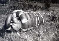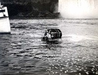William "Red" Hill Junior in the "Thing" in the lower Niagara River by the Maid of the Mist boat No.2 and dock. He later died on August 5, 1951 after going over the Horseshoe Falls.