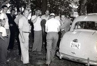 William "Red" Hill Junior's funeral after his death on August 5, 1951. Fourth mourner on the right is Norman Chandler who built the "thing" in which Red died.