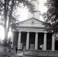 Martha Ann Candler Isaac standing in front her Buckley Avenue home in Niagara Falls. Back of photograph states Lillian Martha Isaac was born in this house on January 24, 1923
