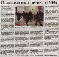 Throne speech misses the mark, says MPP's : Issues important to Niagara omitted from provincial priorities