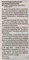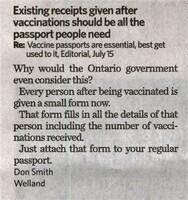 Encouragement for workers important : Re : 70,000 Niagara residents could feel impact of vaccine passport, Sept. 19