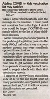 Adding COVID to kids vaccination list may backfire Re : Kids already get shots to attend school. COVID vaccine should be added to the list, Sept. 27