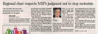 Regional chair respects NRP's judgment not to stop motorists : Late Saturday afternoon the government announced it had backpedalled on its plans