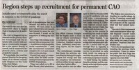 Region steps up recruitment for permanent CAO : Initially opted to temporarily delay the search in response to the COVID-19 pandemic