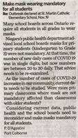Make mask wearing mandatory for all students : Re: Outbreak declared at St. Martin Catholic Elementary School, Nov. 19