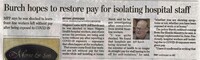 Burch hopes to restore pay for isolating hospital staff : MPP says he was shocked to learn front-line workers left without pay after being exposed to COVID-19