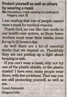 Protect yourself as well as others by wearing a mask : Re: Mandatory mask-wearing to continue in Niagara, Sept 18