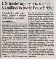 U.S. border agency seizes about $3 million in pot at Peace Bridge : Crates of coffee, coffee makers and 800 kilograms of marijuana could lead to 40 years in jail time
