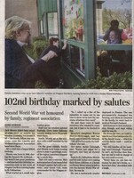 102nd birthday marked by salutes : Second World War vet honoured by family, regiment association