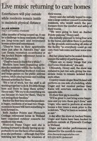 Live music returning to care homes : Entertainers will play outside while residents remain inside to maintain physical distance
