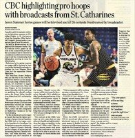 CBC highlighting pro hoops with broadcasts from St. Catharines : seven summer series games will be televised and all 26 contests livestreamed by broadcaster