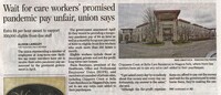 Wait for care workers' promised pandemic pay unfair, union says : Extra $4 per hour meant to support 350,000 eligible front-line staff