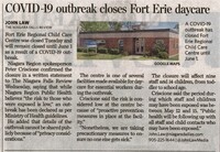 Fort Erie Regional Childcare Centre / COVID-19 outbreak / Niagara Region Public Health
